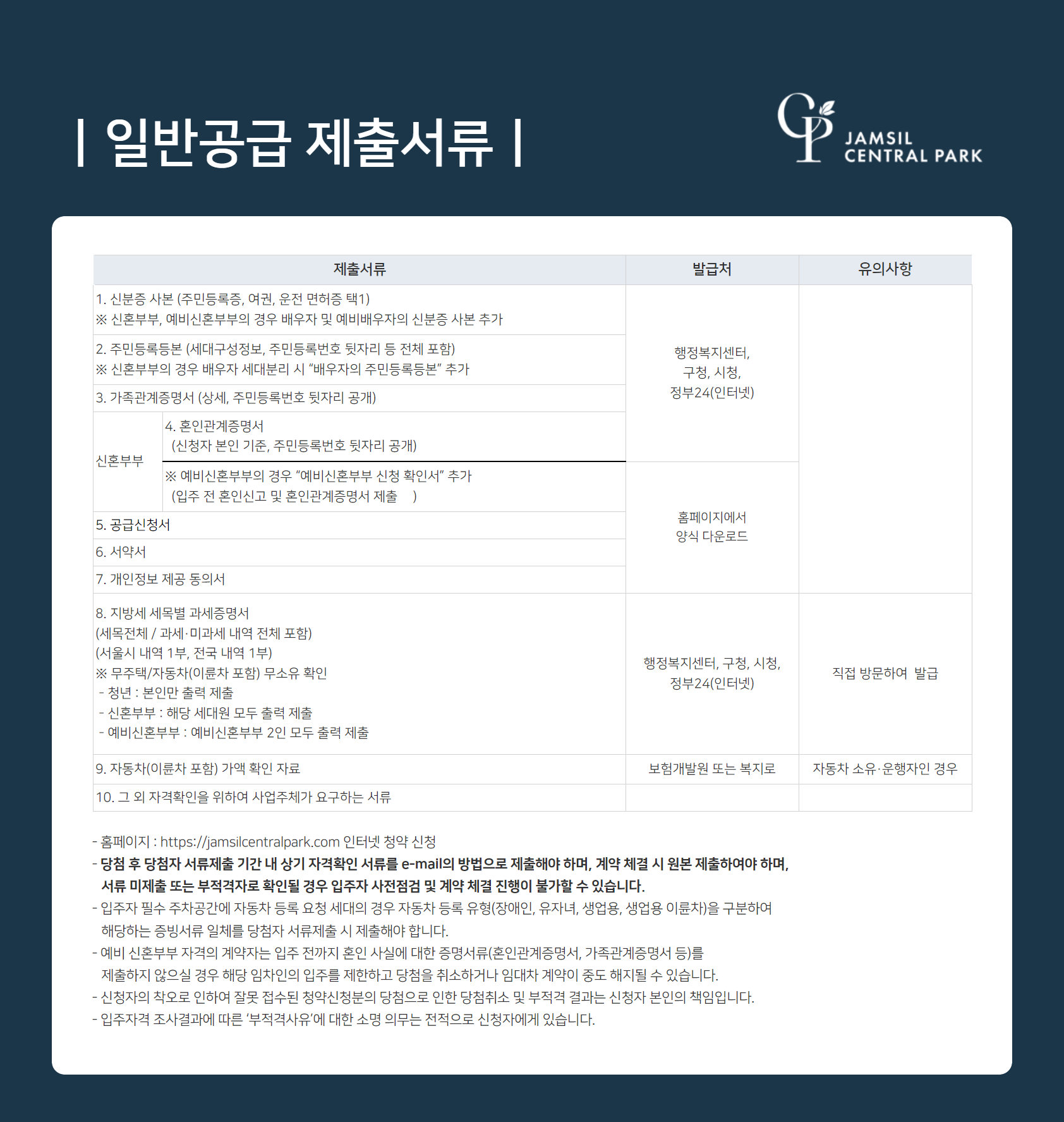 ※ 모든 제출서류는 임차인 모집공고일 이후 발행분에 한하여 접수 가능합니다.